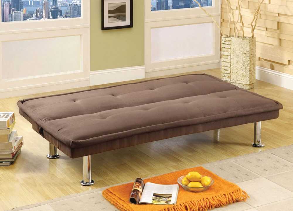 В современных моделях от подлокотников часто отказываются, оставляя только заднюю спинку. В некоторых конструкциях ее можно повернуть на шарнирах и превратить в матрац.