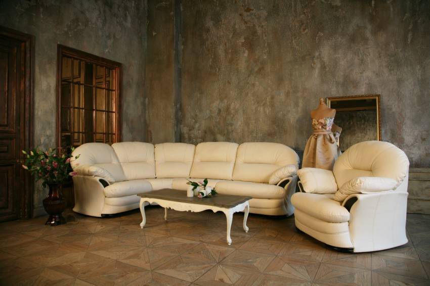 Для гостиной подойдет натуральная или синтетическая кожа. Красивый внешний вид такого дивана станет изюминкой в интерьерном пространстве. Этот материал не требует особого ухода. Его достаточно протирать влажной тканью по мере загрязнения поверхности. Кожаная текстура требуют бережного отношения. На её поверхности могут оставаться царапины и порезы.