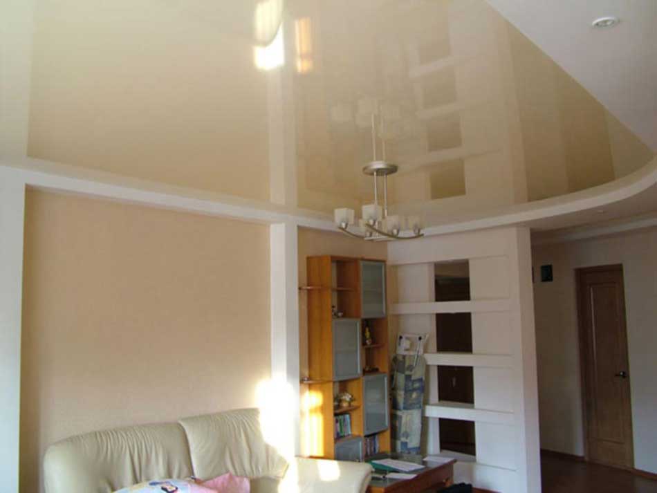 Здесь все зависит только от вашего воображения и чувства стиля. Работая с цветом глянцевого натяжного потолка, вы выделите разные уровни и сможете разделить помещение на функциональные зоны.