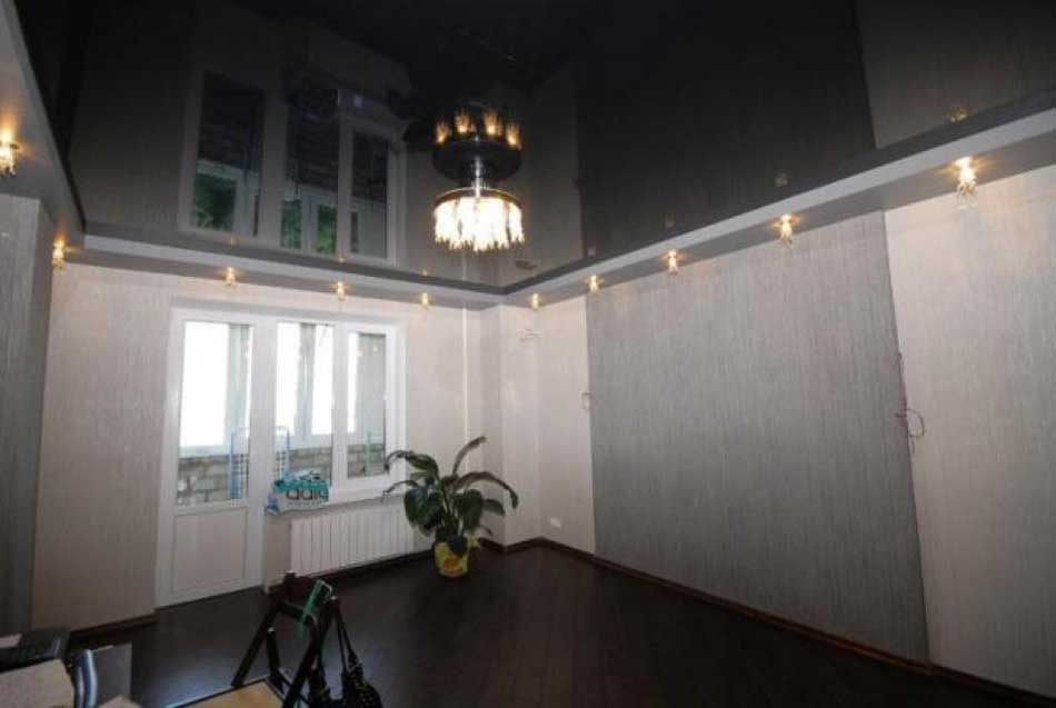 Черный глянцевый потолок допускается монтировать в любом помещении. Это может быть ночной клуб, ресторан, кафе, офис солидной компании, гостиная квартиры или дома. Многоуровневая или одноуровневая конструкция с сочетанием черного и различных цветов, а также иные варианты позволяют придать помещению стиля, изысканности и респектабельности. Любой интерьер только выиграет, если он будет украшен черным глянцевым натяжным потолком. В нем отражается не только свет, но и все предметы, расположенные под ним, что визуально расширяет пространство очень сильно.