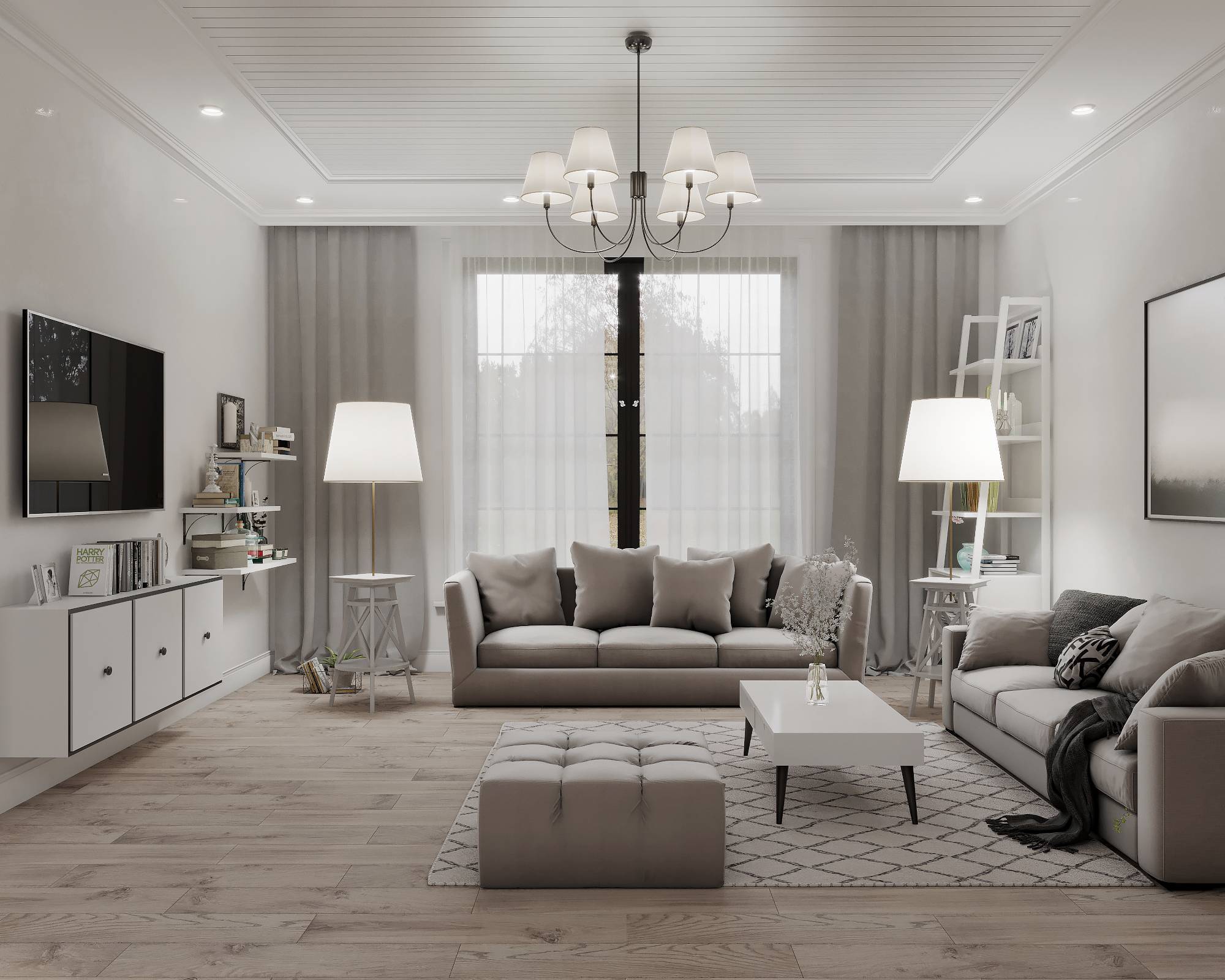 Яркие декоративные элементы разнообразят белый цвет в вашей гостиной.