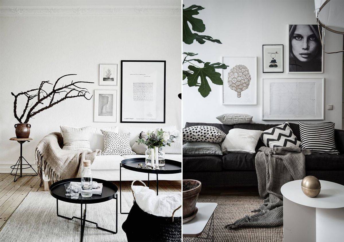 Монохромные интерьеры скандинавия-стиля нуждаются в дополнении аксессуарами.