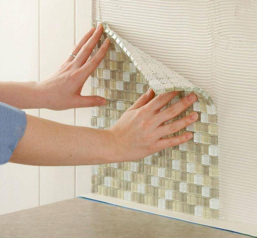 Как клеить мозаичную плитку на сетке на стену, наглядно показано в видео: