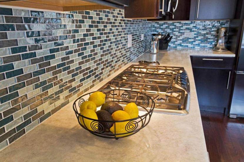 Плиты из керамики более универсальны в данном плане, они в отличие от стекла, способны перекрыть цвет клеевого раствора, но при выборе учитывают тип поверхности. Когда материал сделан из природных камней, то могут выбираться те, которые не любят воздействие влаги, тогда важны свойства влагостойкое и быстросохнущие, чтобы контакт с жидкостью был минимальным даже при ремонте.
