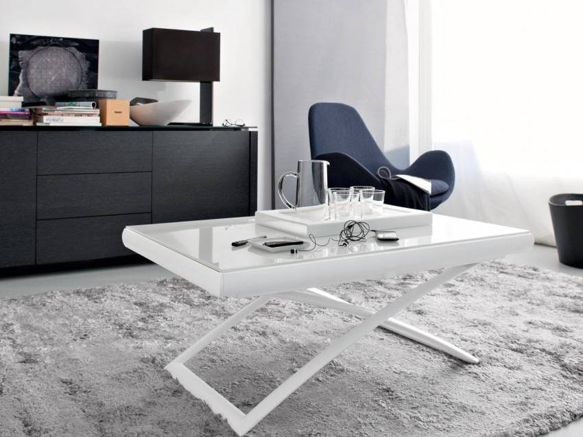 Для гостиной и кухни специалисты советуют подбирать стол из белого дерева с глянцевым покрытием. А для спального помещения идеальным украшением станет белый журнальный стол со стеклянной столешницей.