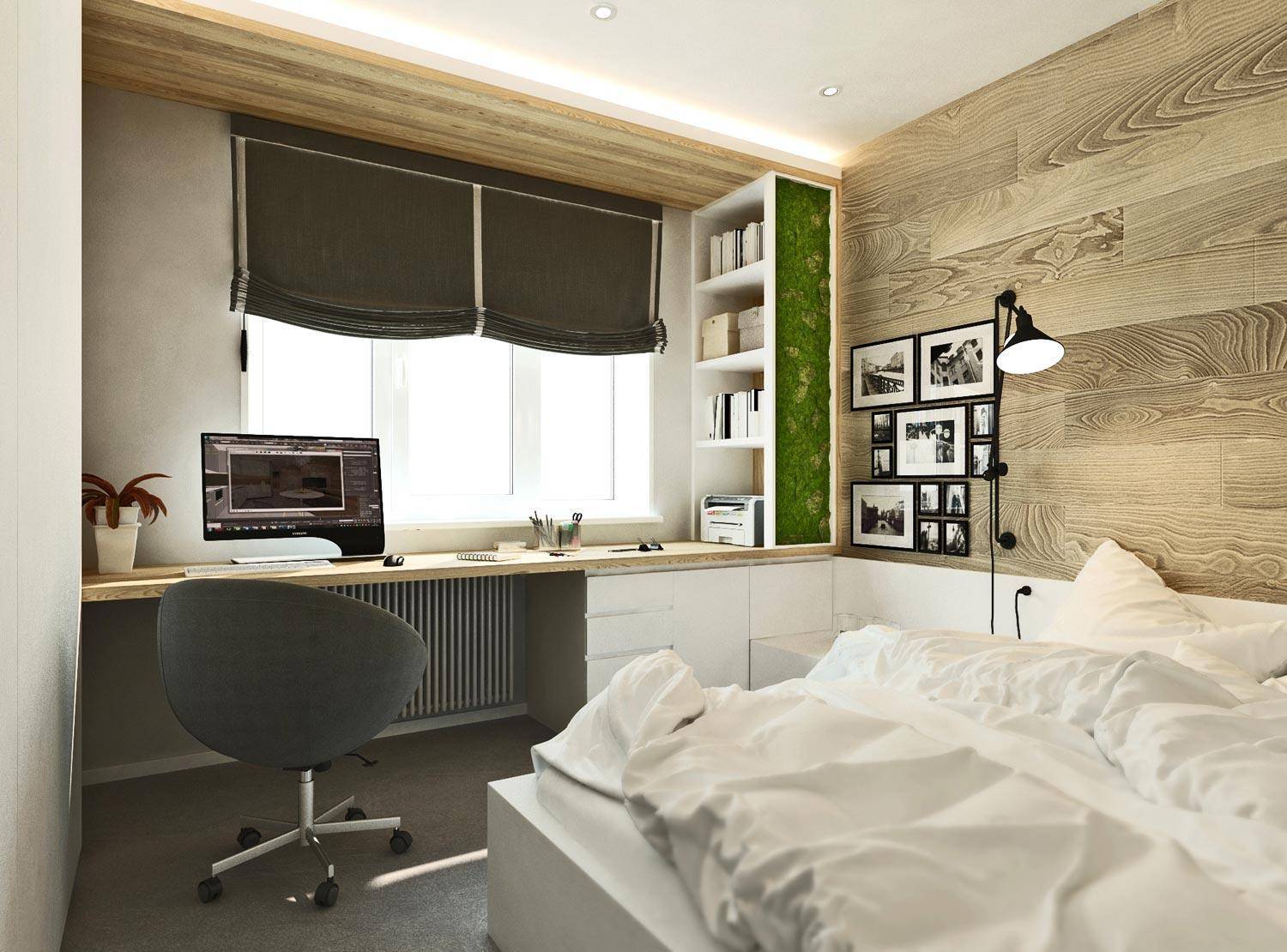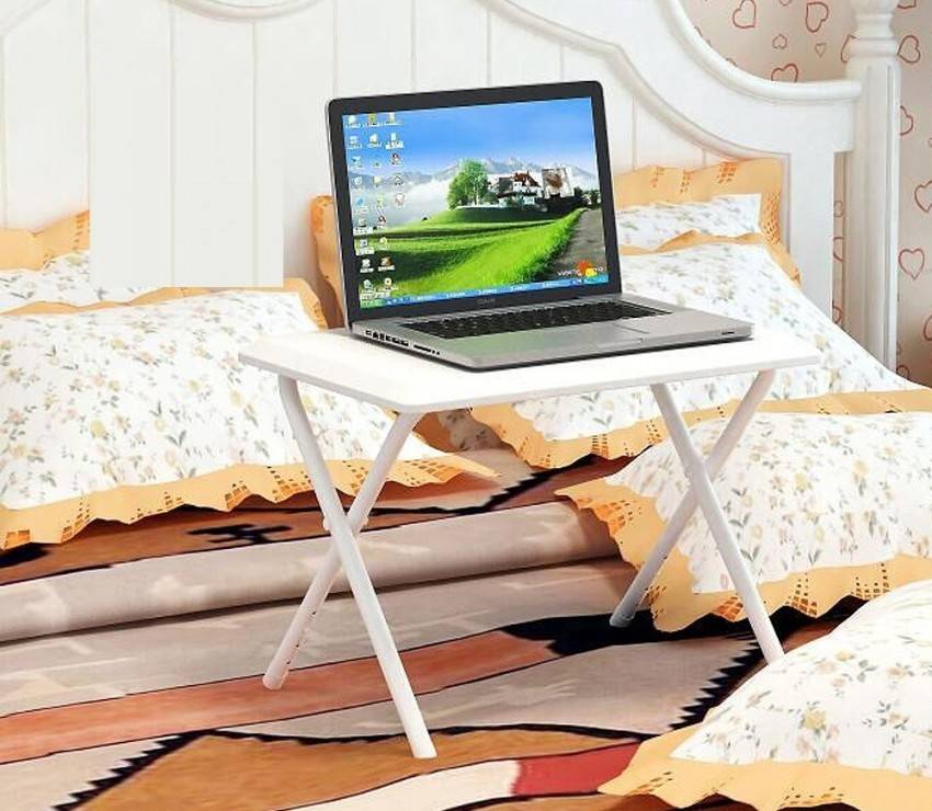 Оптимальным решением для спальни будет мобильный компьютерный столик небольших размеров. Столы-консоли, трансформеры, узкие пристенные модели, а также компактные угловые столы, либо рабочая зона на месте подоконника также будут хорошим вариантом для данного пространства.