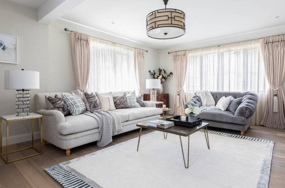 - Однотонный текстиль светлых оттенков гармонично вписывается в современные стили контемпорари, хай-тек или минимализм. Лучше всего использовать натуральные ткани.