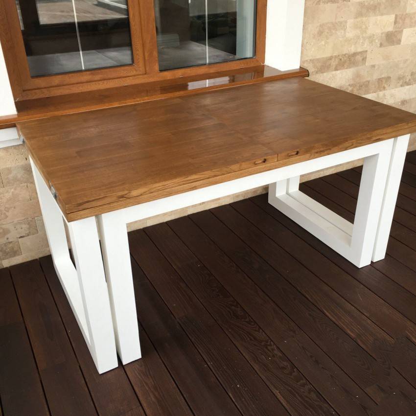 Обеденные раздвижные столы для кухни чаще всего выполняют именно из подобного материала. Древесина отлично подходит для изготовления дополнительных панелей. Конструкции типа трансформер можно выполнить даже в домашних условиях, имея минимальные навыки владения рубанком и лобзиком.