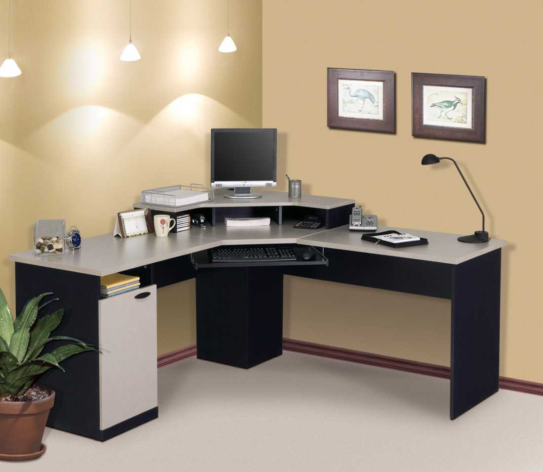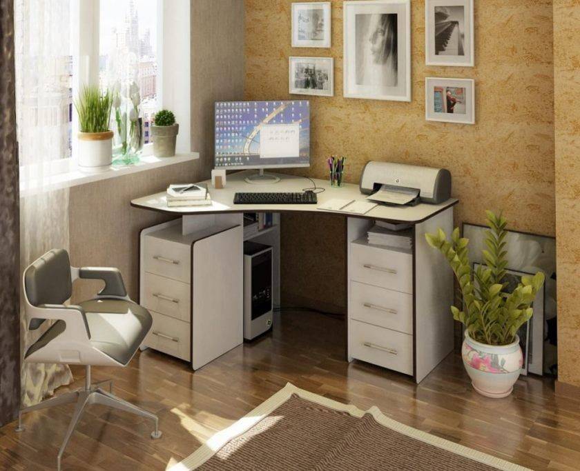 В случае необходимости экономии пространства прекрасным вариантом станет угловой стол. Он не занимает много места, как пример можно привести угловой белый компьютерный стол.