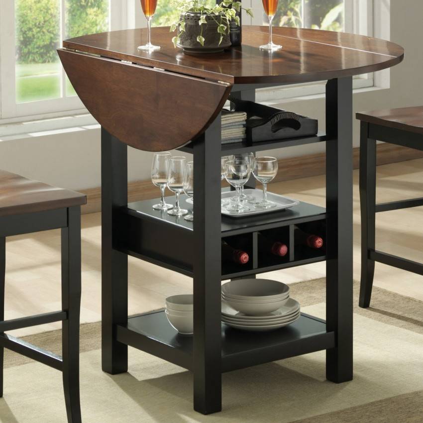 - Круглые столы для кухни. Такие модели достаточно компактны, занимают минимум свободного пространства, могут располагаться на застекленном балконе, в совмещенных кухонных зонах.