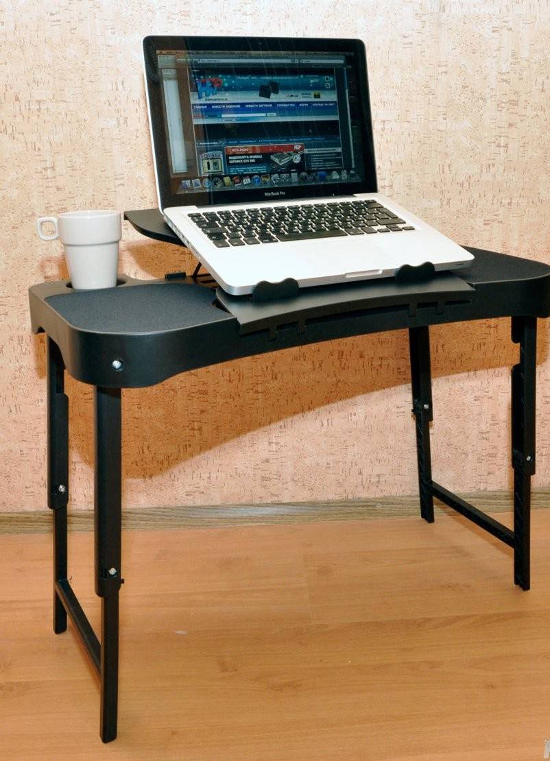 Такой вариант имеет несколько положений регулировки высоты, чтобы было одинаково за ним сидеть как в кресле, так и на обыкновенном стуле.