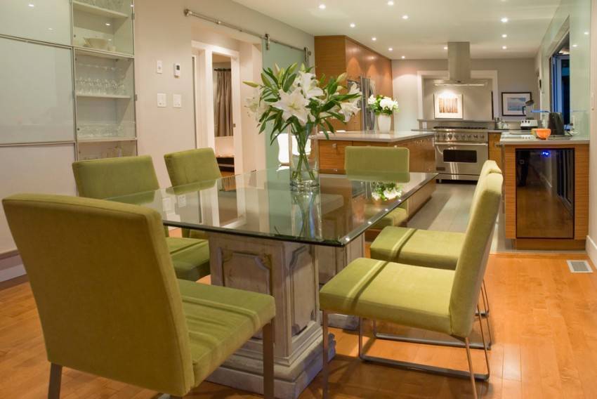 Стилевая сочетаемость с мебелью гостиной, кухни. Вовсе не обязательно покупать стулья в комплекте со столом, но не следует вовсе пренебрегать стилевыми нормами. Современные столы и стулья предусматривают множество вариантов комплектации по стилю и цвету.