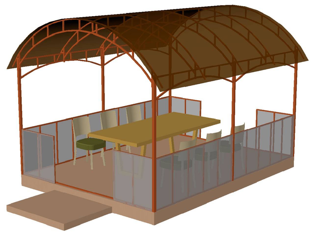 Важно, чтобы под навесом помещалась обеденная группа, а у гостей была возможность свободно выйти из-за стола, никого не потревожив