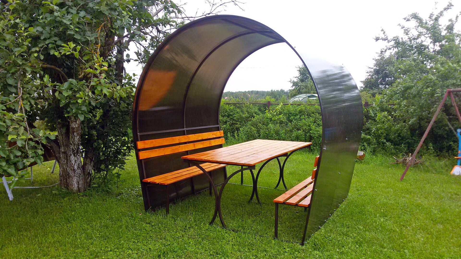 Обычно беседки из поликарбоната устанавливают возле густых деревьев. Благодаря своей прозрачности, солнечный свет будет поступать в достаточном количестве.