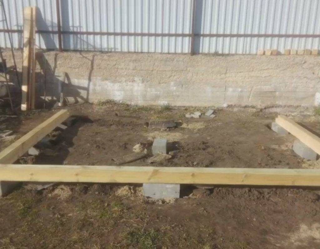 На следующем этапе готовим поддоны. Нужно выложить основу из деревянных брусьев, которые закрепляются к основанию при помощи анкеров.