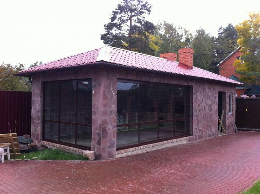 Делаются в виде закрытого помещения, могут использоваться круглый год. В них ставят барбекю, мангалы, стационарные печи и различные кухонные принадлежности. Часто стены утепляют, внутри монтируется камин, иногда подводят коммуникации в виде водопровода, газа, электричества.