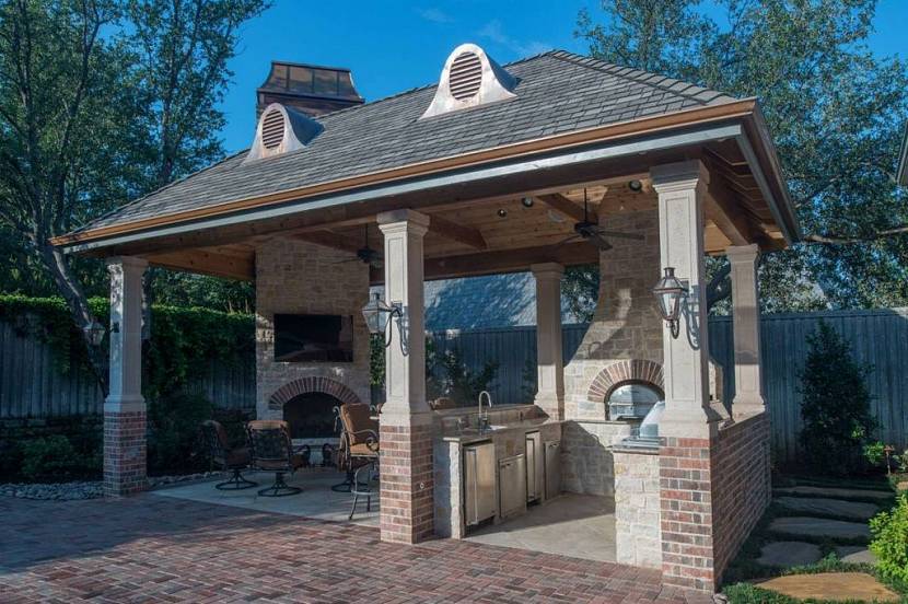 Важно продумать крышу, ведь через неё должен быть проведен дымоотвод. Пожарная безопасность, наличие тяги, укладка кирпичей — создание подобного комплекса требует соответствующей подготовки, все вышеописанные моменты необходимо учесть