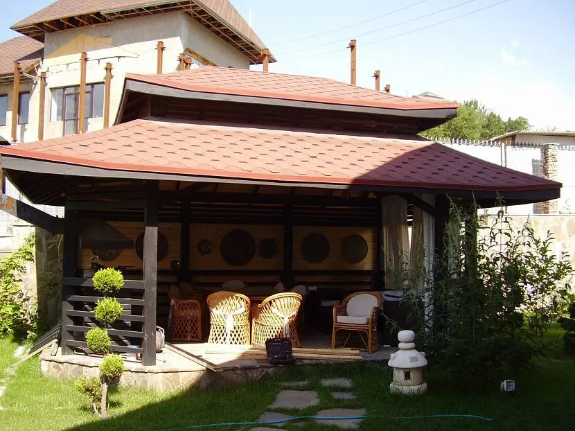 Они разнообразны: от японского минимализма до ближневосточной роскоши. Выбор восточной беседки будет удачным, если имеется возможность расположить ее рядом с водоемом. Для строительства используются натуральные материалы: дерево и камень, иногда добавляется экзотический бамбук или тростник.