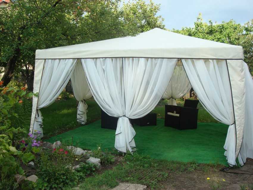 Готовые беседки. У покупных тентовых конструкций есть много преимуществ. Самое главное – это внешний вид. Созданная руками умельцев постройка точно будет выглядеть красиво и соответствовать всем требованиям. Самостоятельно да еще и без опыта построить что-то подобное будет очень сложно.