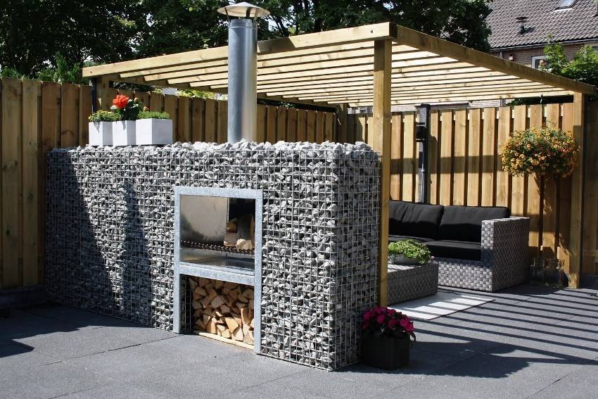 Если такая конструкция размещена в закрытой беседке, важно установить дымоход и мощную вытяжку.