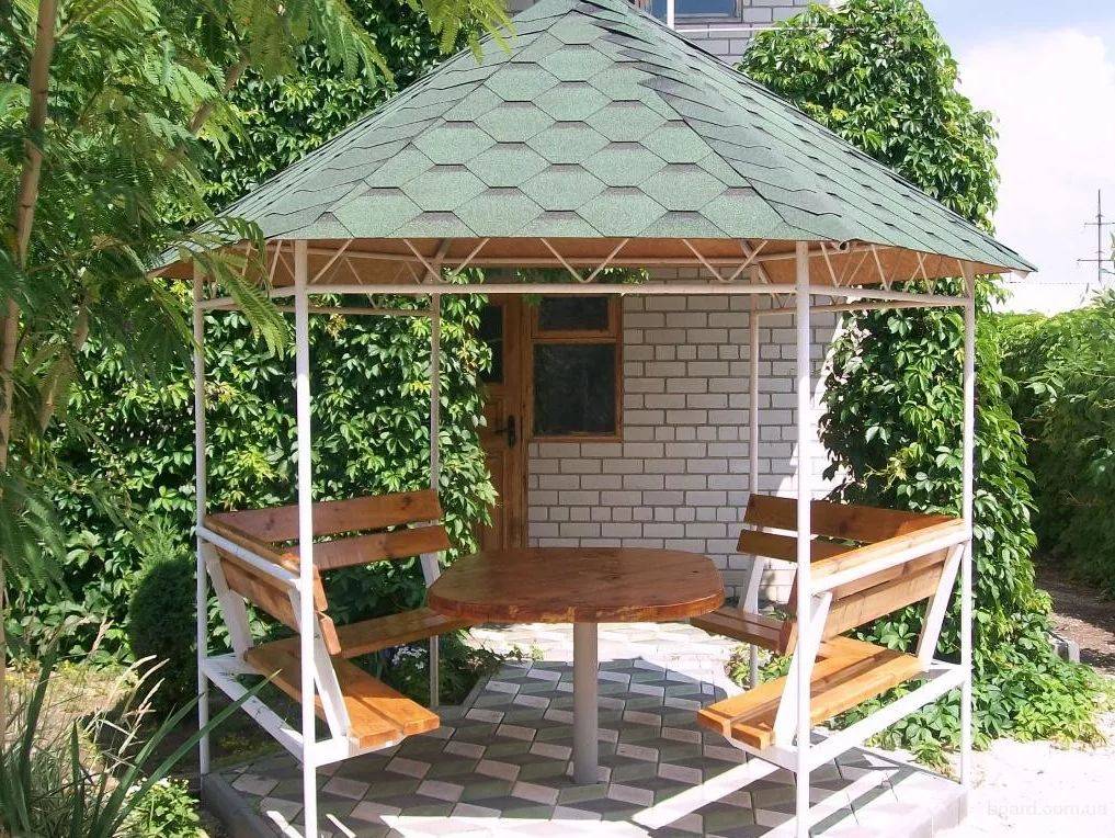В начале, мы посмотрим, как сделать простую беседку открытого типа из разных видов материалов.