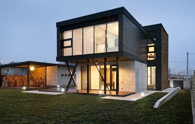 Проект модного, ультрасовременного и динамичного дома в лесу часто предполагает панорамное остекление и открытую террасу с видом на природу.