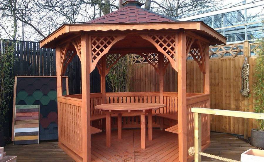Это предохранит дерево от гниения и продлит срок службы беседки.