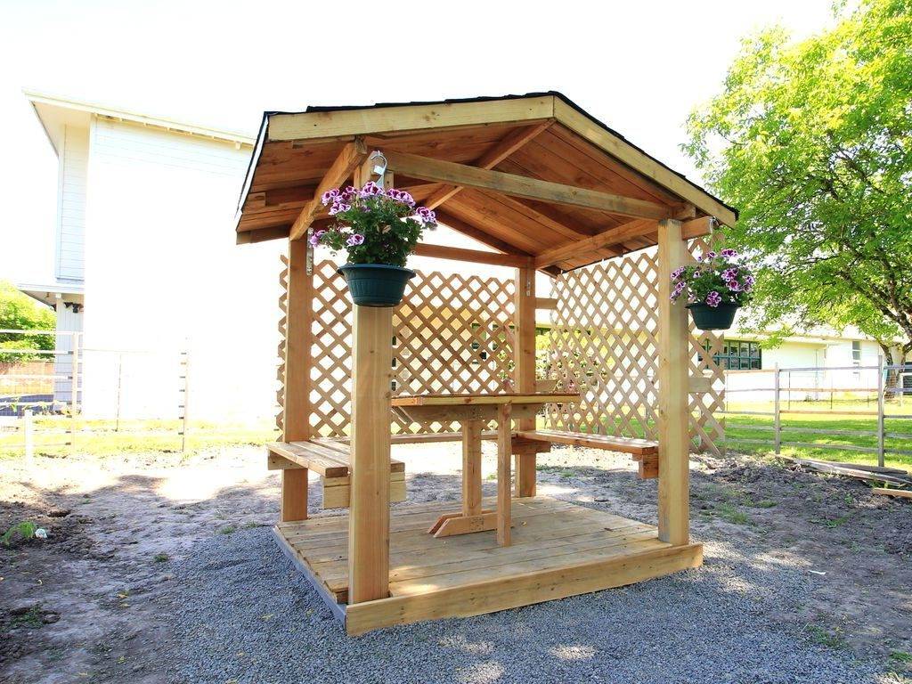 Не позволяйте тому факту, что у вас маленький задний двор, отказываться от постройки собственной деревянной беседки. Так как это проект своими руками, вы можете сделать его настолько маленьким, насколько захотите, и адаптировать дизайн, добавляя или удаляя функции в зависимости от ваших потребностей.