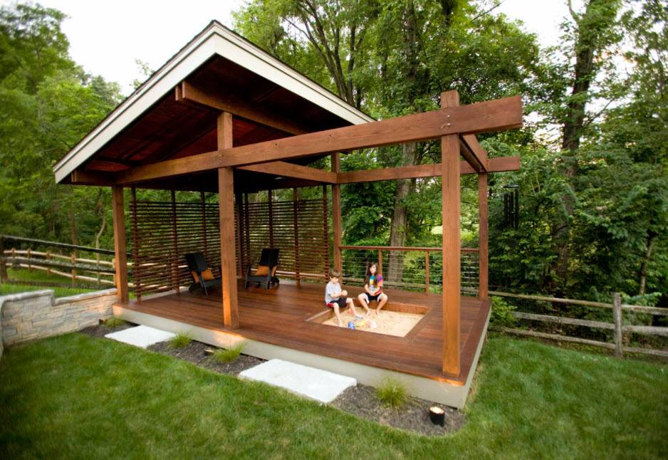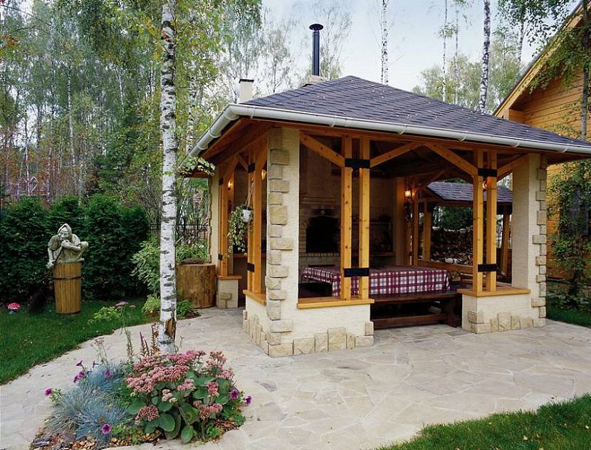 Декоративный павильон с площадкой для мангалаИсточник en.decorexpro.com