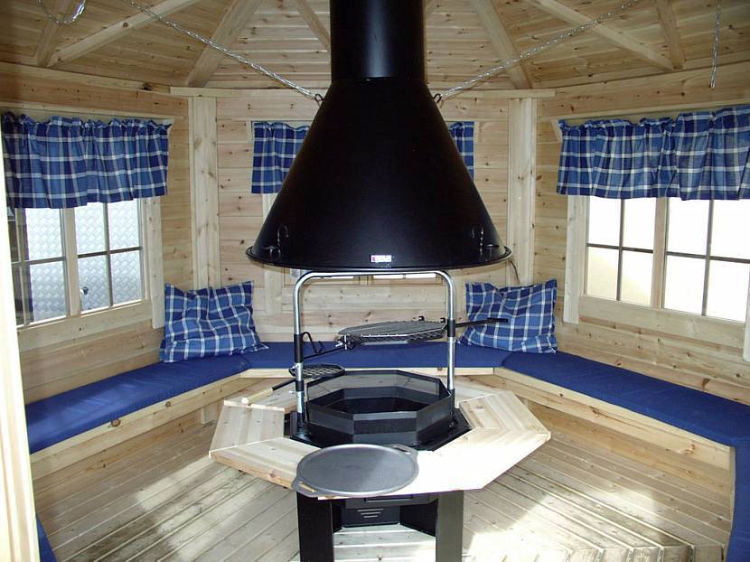 Очаг можно установить в центре, вдоль стены или в углу. Выбор расположения зависит от формы и стиля беседки. Если последняя имеет 6-8 углов, что присуще финскому домику, то ставку надо делать на расположение очага в центре. Простые беседки приветствуют организацию очага вдоль стены и угловой вариант.