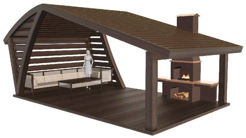 — Помимо прочего, за этой беседкой очень просто ухаживать – дополнив конструкцию металлическим каркасом, вы будете уверены, что ремонт понадобится очень нескоро.