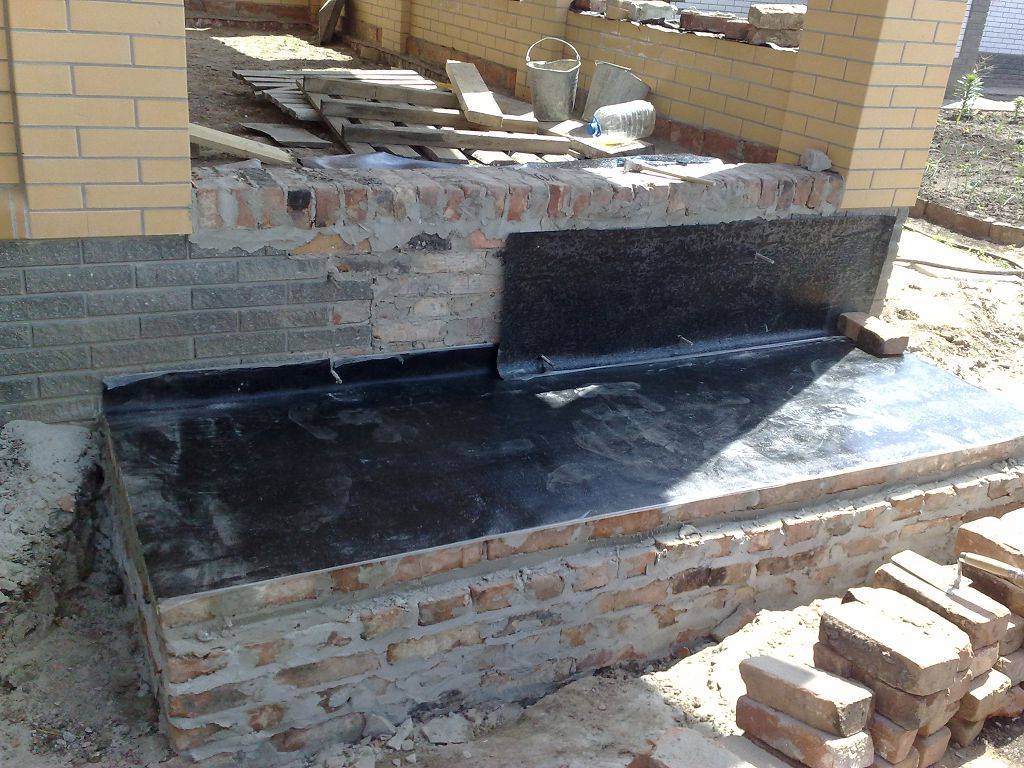 Верх основания покрывается слоем гидроизоляционного материала. Рекомендуется дополнительно изолировать стену здания, примыкающую к крыльцу.