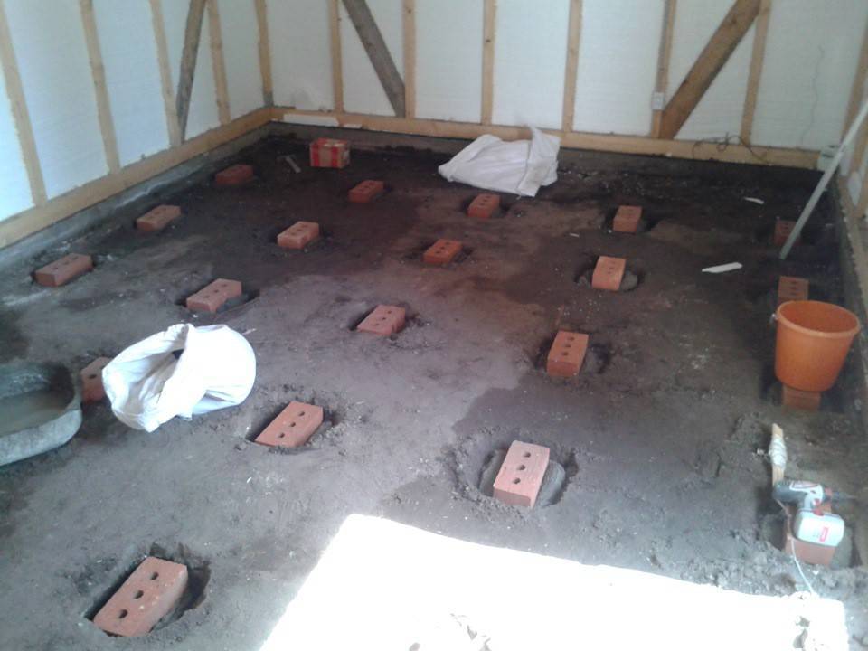 - после заливки цоколя внутреннее пространство расчищают и выравнивают;