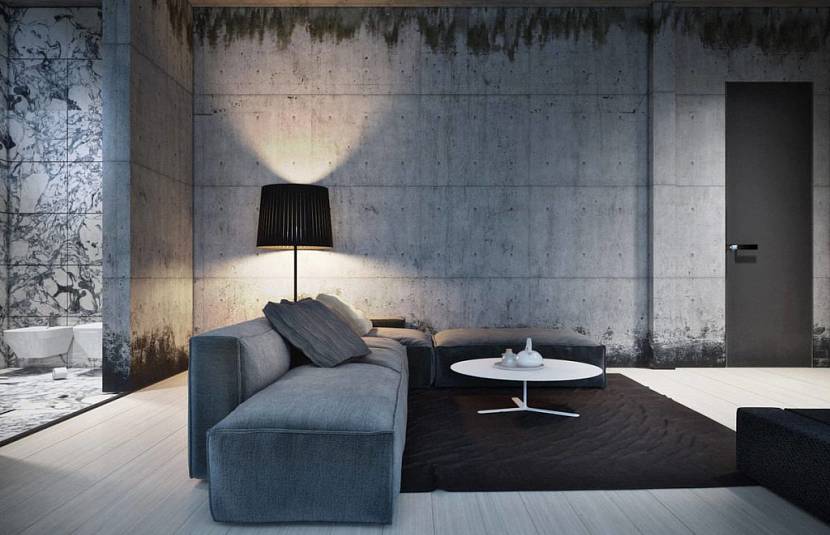 Бетон – пластичный материал, при правильном использовании он может раскрыть совершенно другие свои свойства. Современные дизайнеры не скрывают сегодня следы от опалубочной конструкции, не маскируют стыковочные швы, наоборот, всячески обыгрывают их наличие и, используя другие приемы, ломают стереотипы. Сегодня бетонные стены в интерьере выглядят мягко и теплее за счет расстановки правильных акцентов. Мягкие ковры, нежный текстиль на окнах, бархатистая обивка мебели – все это не дает сформироваться атмосфере мрачного подвала или бункера.