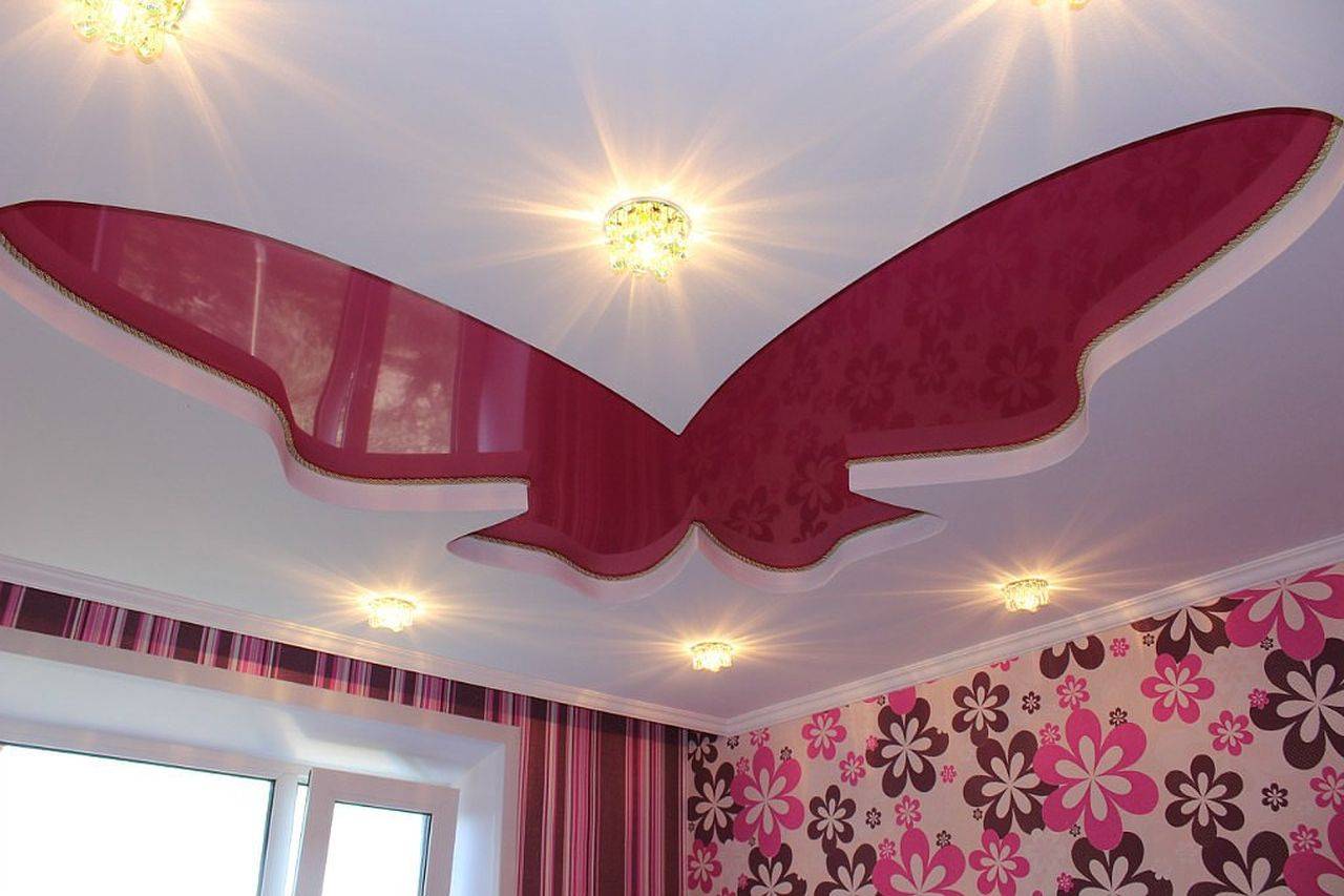 Оригинальные и стильные потолки являются изюминкой любой комнаты, они могут быть как однотонные, так и с добавлением нескольких цветов, светодиодных лампочек, с наличием определенного декора.