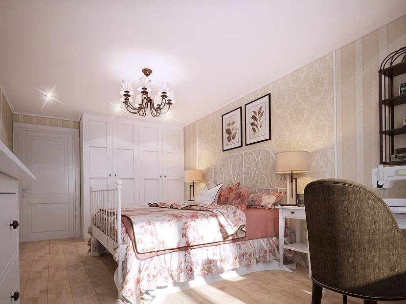 Провансальное дизайнерское направление в спальне в бежевом цветеИсточник berkem.ru