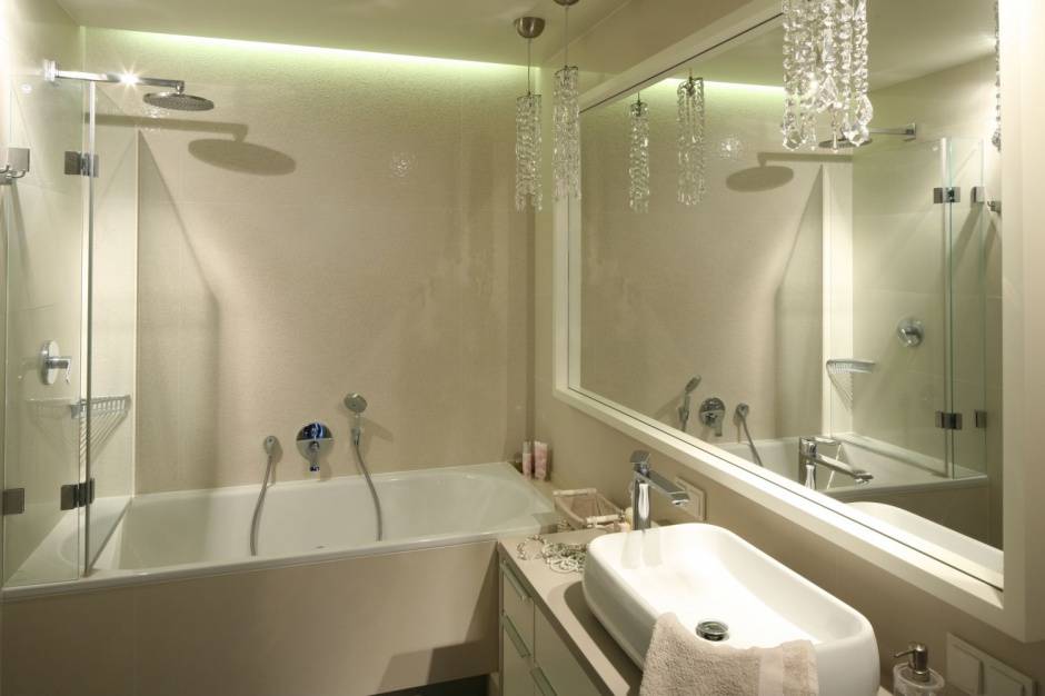Важно! Так как воздух в ванной обладает повышенной влажностью, следует позаботиться о безопасном использовании осветительных приборов.