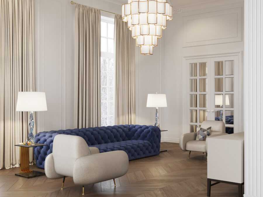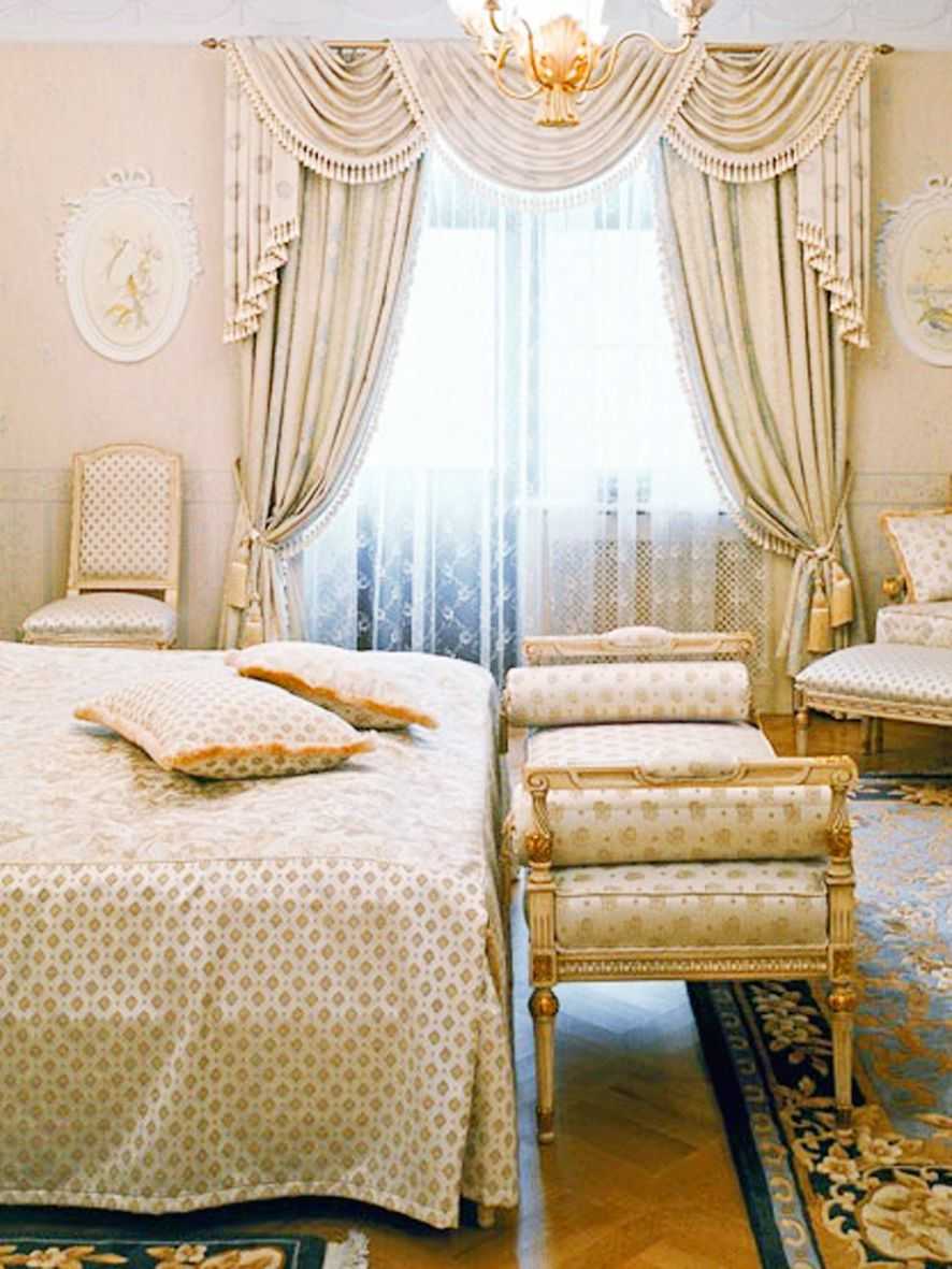 2). Отталкиваясь от мебели | Тяжелые классические предметы быта стоит визуально облегчить за счет штор, от которых в помещении становится светло. |