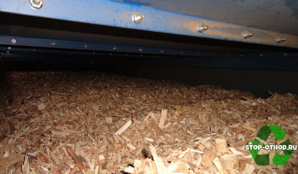 - Измельчение/дробление сырья до фракции не более 3мм. Отходы измельчаются в рубильной машине. Вращающийся барабан аппарата, оснащенный острыми ножами, измельчает щепки и отделяет более крупные из них для повторного измельчения до необходимых размеров.