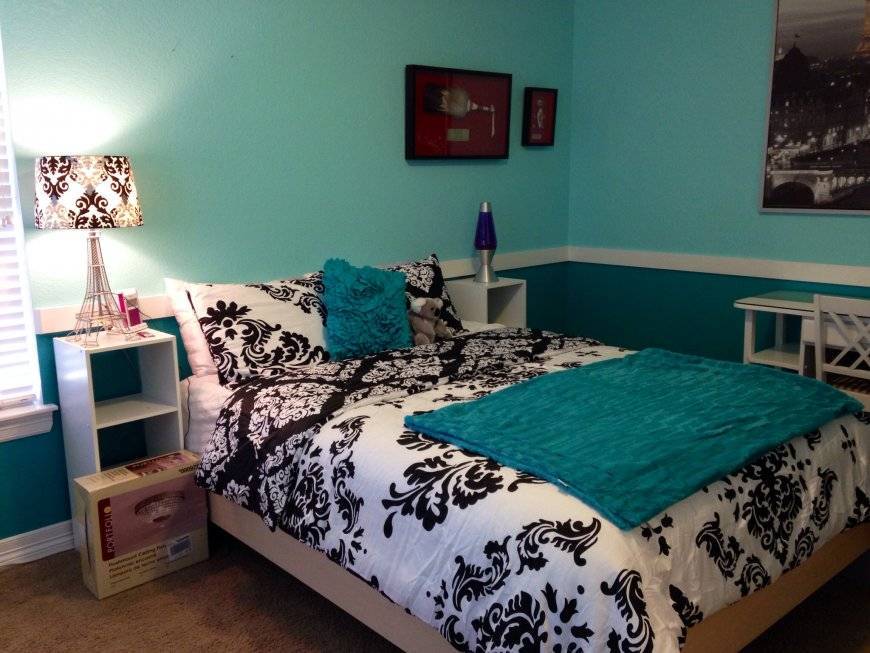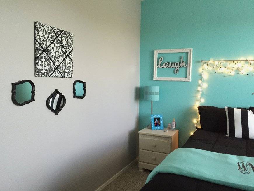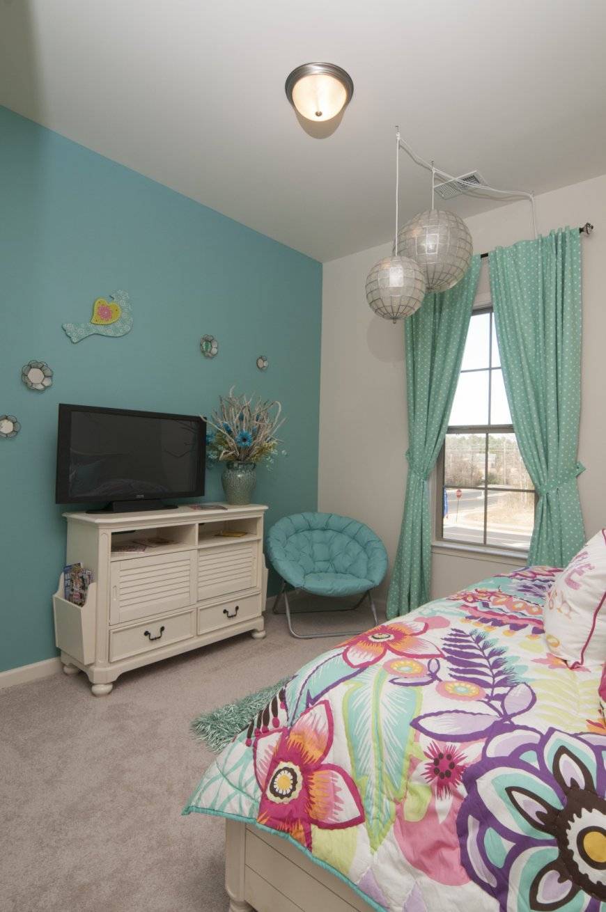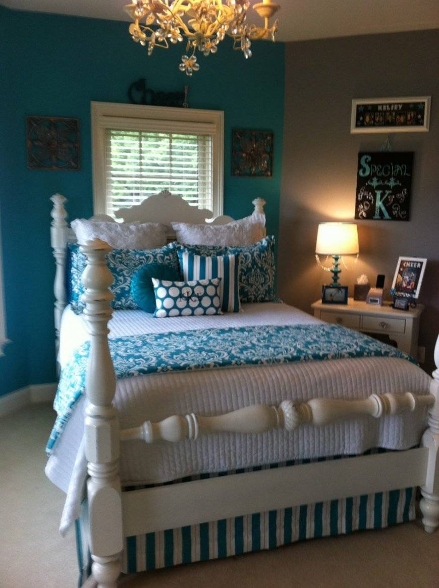 Оформление стен. При выборе нужно ориентироваться на их цвет. Если стены бирюзовые, кровать того же оттенка будет не очень хорошо смотреться.