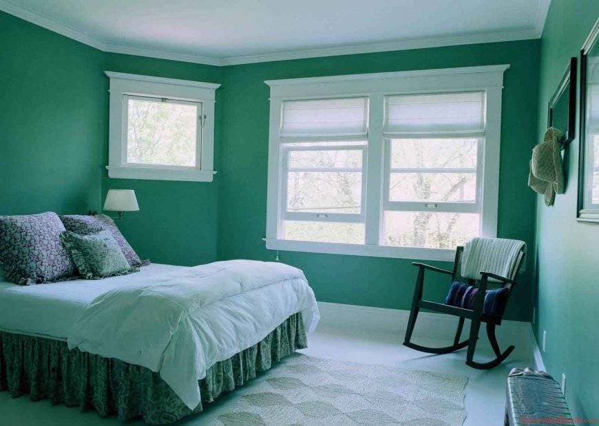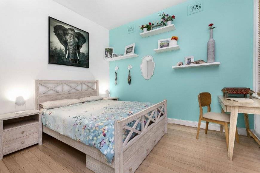 Посмотрите, какая ниже симпатичная бирюзовая спальня в интерьере – фото.