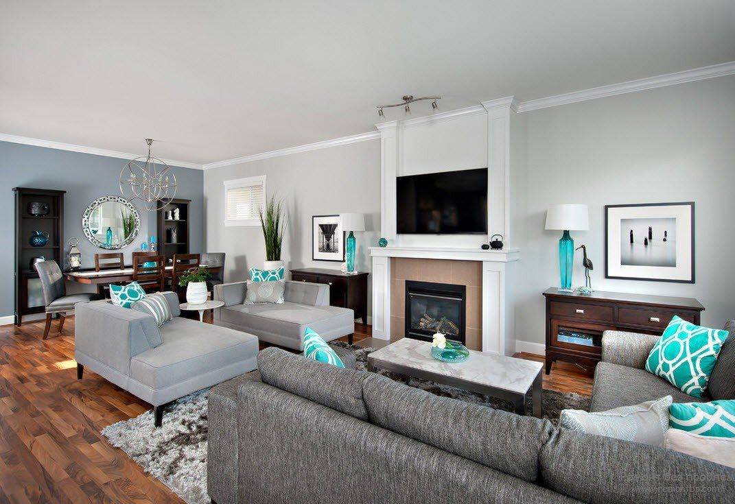 - Активный яркий бирюзовый цвет лучше смотрится в комбинации с другими смягчающими колерами. Доминирующий оттенок бирюзы придаст обстановке слишком тяжелый вид.