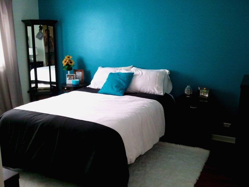 Важно!Бирюзовый цвет в интерьере спальни оптимален для залитой солнцем комнаты. В более тёмной, то хорошо будет смотреться мебель и текстиль в светло-коричневых и жёлтых тонах.