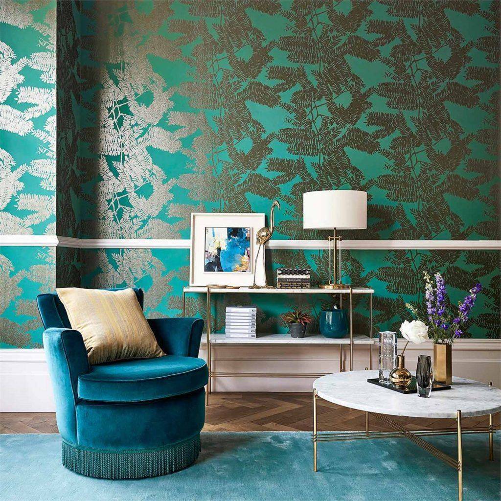 Любителям обоев подойдут монохромные краски или с ненавязчивым бирюзовым узором. Тон должен повторяться в других элементах.