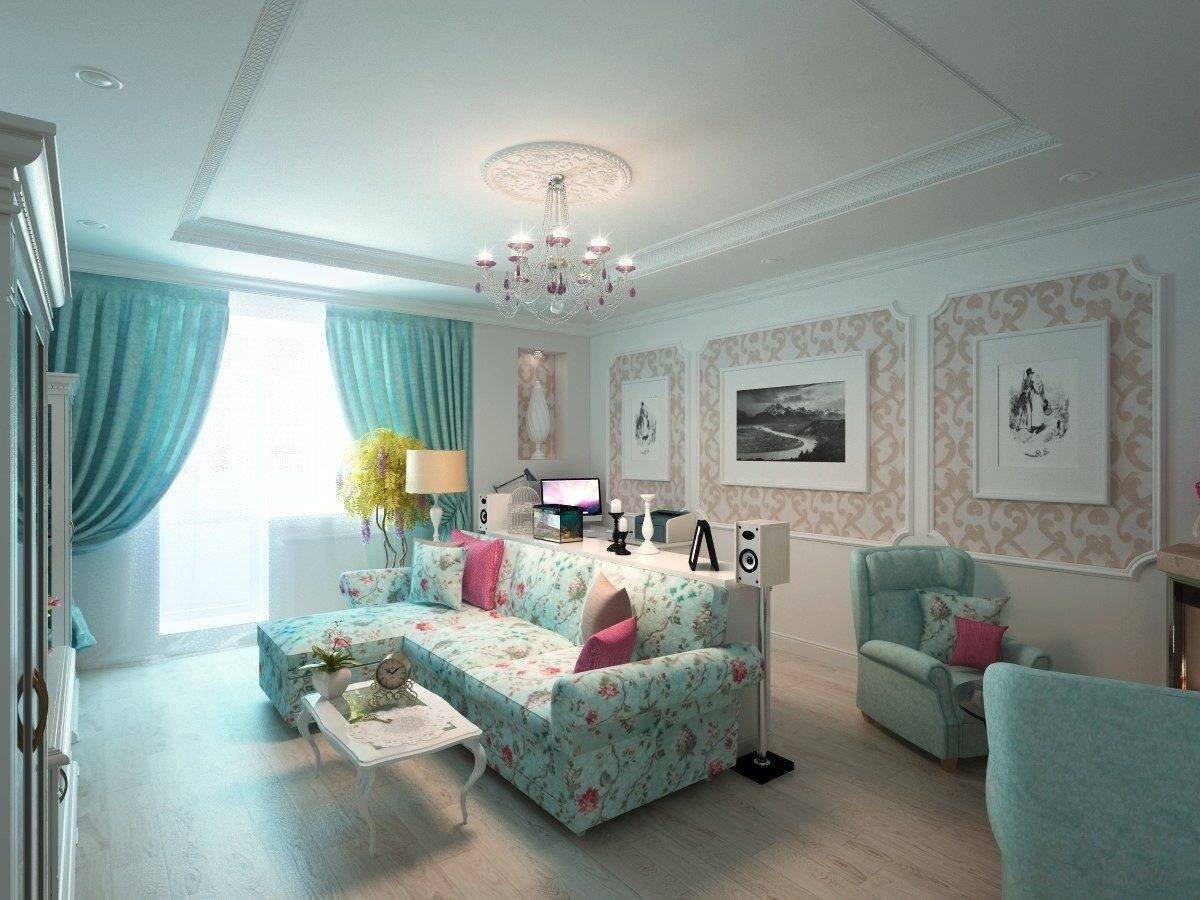 Специалисты рекомендуют ярко бирюзовые: молдинги, с плинтусами, обои с такими рисунками, отделку изголовья кровати, одну из стен. Другие изделия пусть будут светлыми и нейтральными.