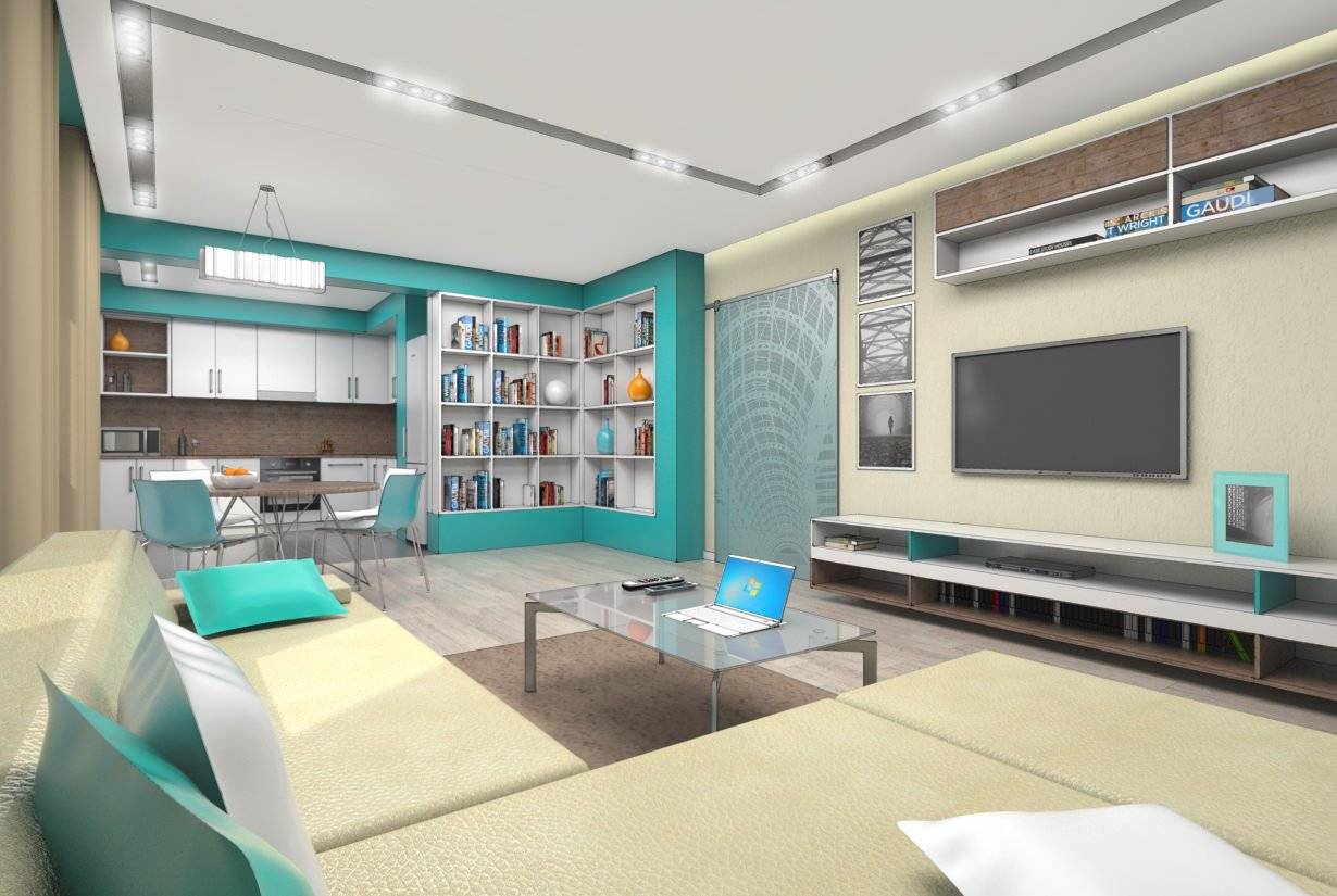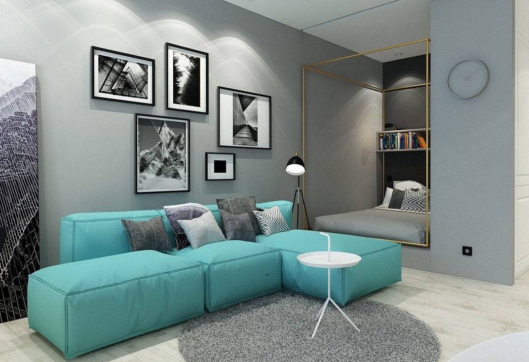 Сине-зеленые оттенки могут стать основным фоном комнаты. Только надо учитывать, что преобладание темных тонов визуально сделает помещение меньше, а светлых – больше.