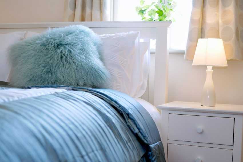 Кроме занавесок и постельного белья, придать комнате лазурного шарма помогут различные предметы и аксессуары (светильники, сувениры). Если же вы хотите создать действительно качественный дизайн, не стоит забывать о мебели и освещении.