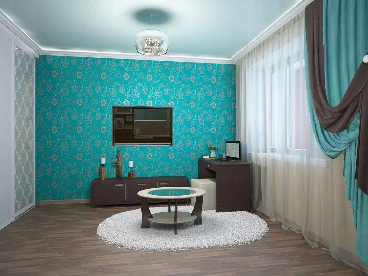 При оформлении интерьера не допускайте большого перенасыщения бирюзовыми тонами. Имея такие обои, нужно сделать так, чтобы занавески, покрывала, подушки и прочие детали смягчали комнату нежными и легкими оттенками.