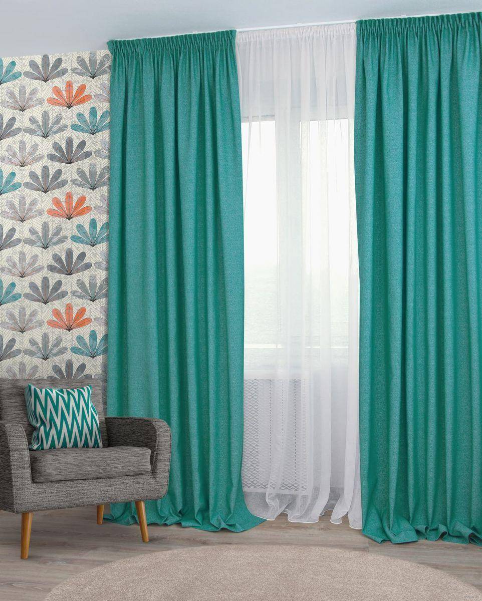 Оттенок морской волны – тренд 2020 года. Такие занавеси преобразят даже старые оконные рамы.