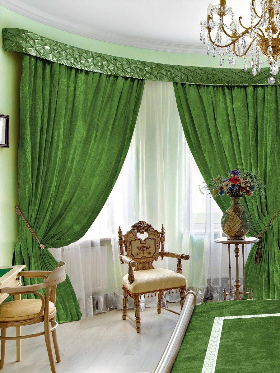 Этот декоративный элемент способен украсить комнату любого назначения. Чем больше помещение, тем более пышными могут быть занавеси с ламбрекенами.